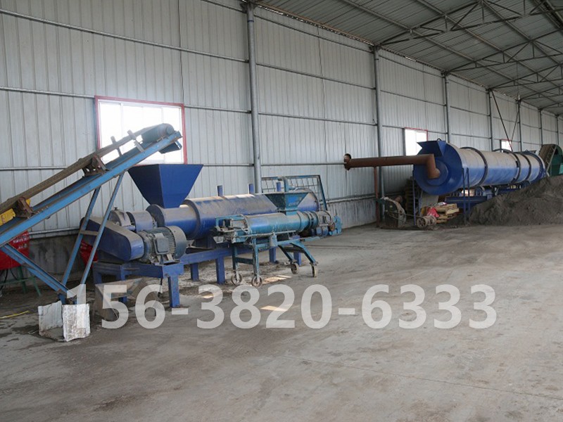 一般原料發(fā)酵之后,可直接深加工造粒。如果原料沒經(jīng)過處理,參照以上方法發(fā)酵,整套設(shè)備需要發(fā)酵翻拋機、半濕物料粉碎機、滾筒篩分機、臥式攪拌機、造粒機、烘干機、冷卻機、滾筒篩分機、包膜機、自動定量包裝機等設(shè)備。